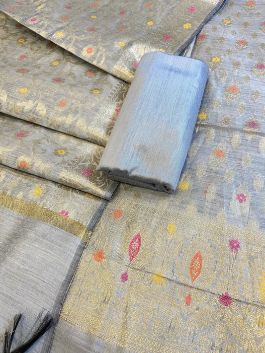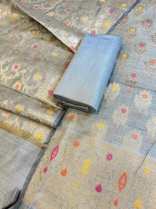 Light Sky Blue Cotton Resham Minakari Floral Zari Booti Banarasi Suit 625AJ_PBC11