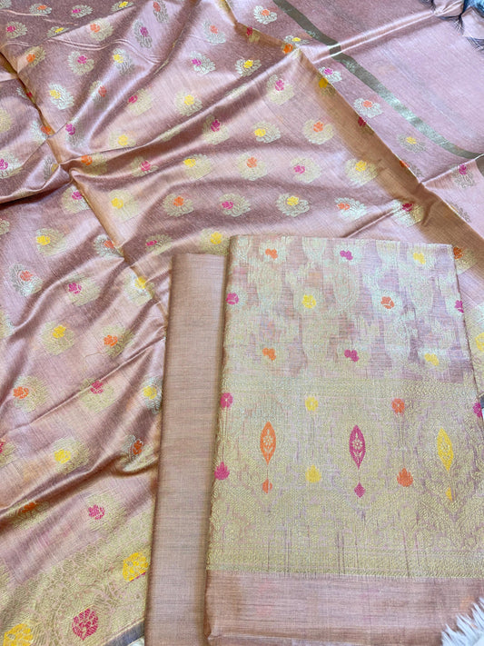 Peach Semi Katan Silk Handloom Banarasi 3 pcs Suit Set MUB_SK89