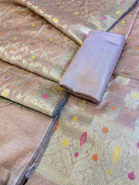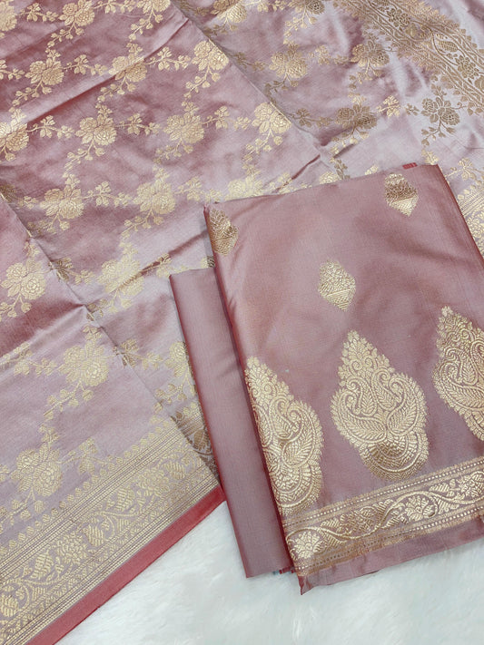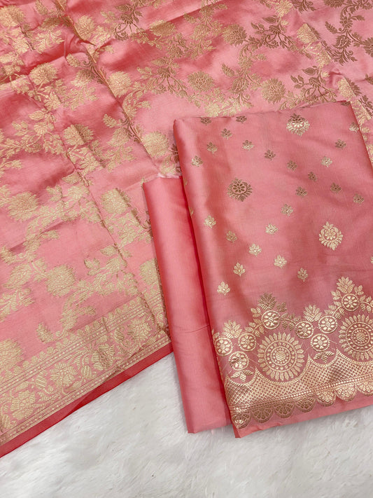 Pink Semi Katan Silk Handloom Banarasi 3 pcs Suit Set MUB_SK93