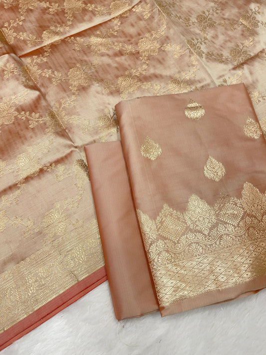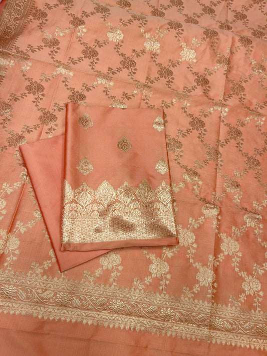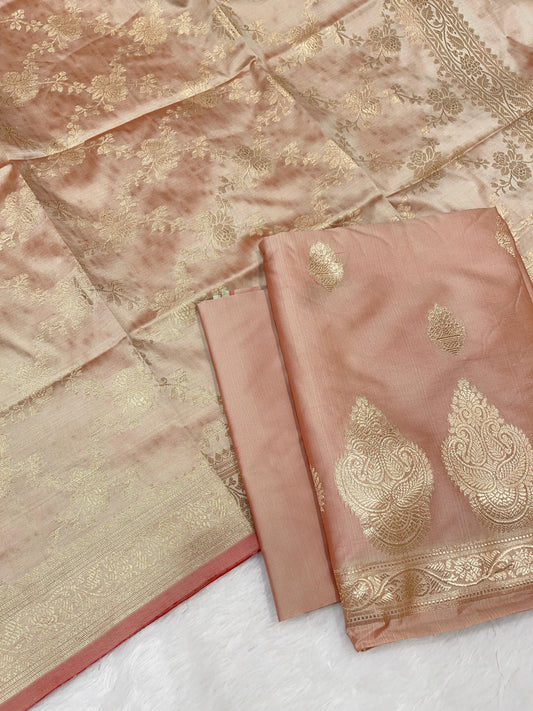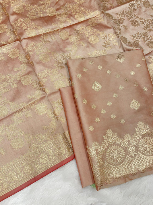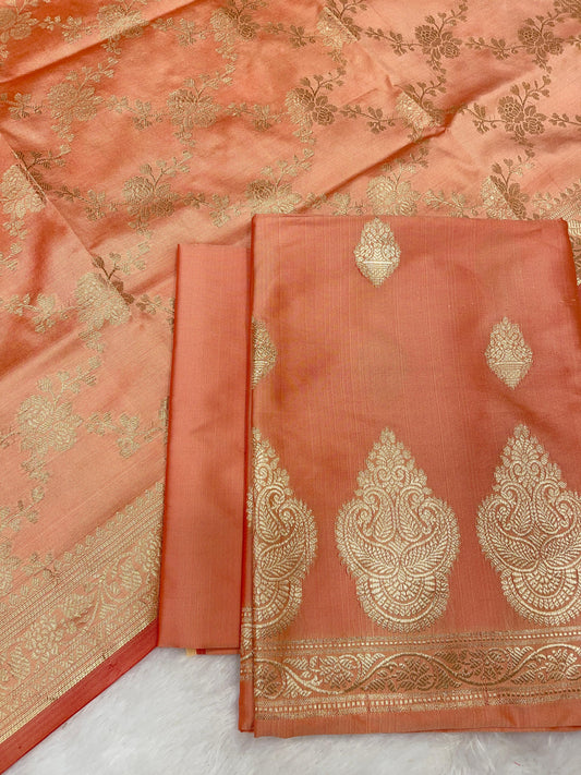 Peach Semi Katan Silk Handloom Banarasi 3 pcs Suit Set MUB_SK102