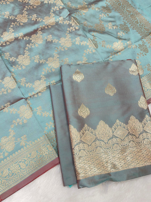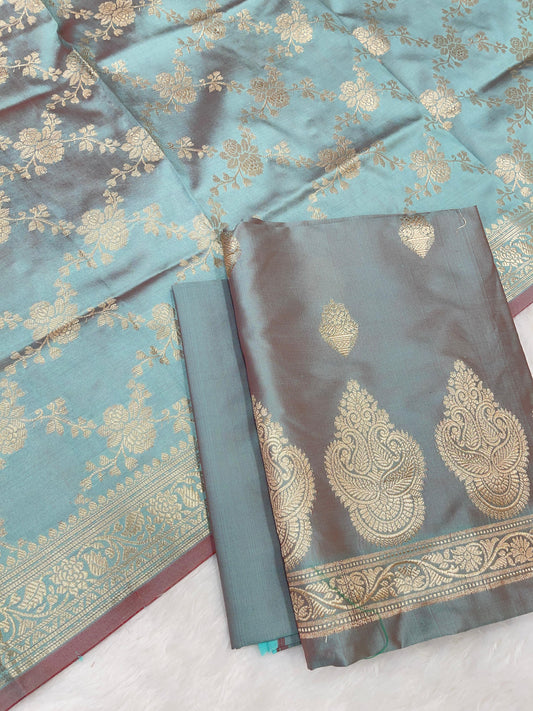 Seagreen Semi Katan Silk Handloom Banarasi 3 pcs Suit Set MUB_SK101