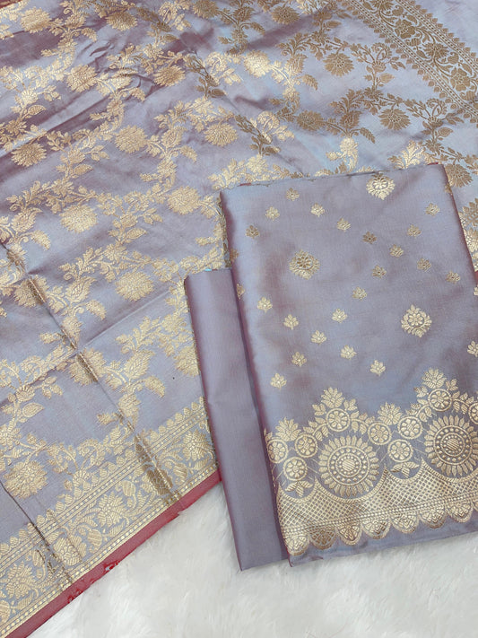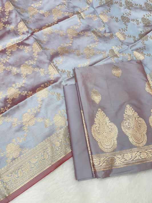 Light Purple Semi Katan Silk Handloom Banarasi 3 pcs Suit Set MUB_SK88