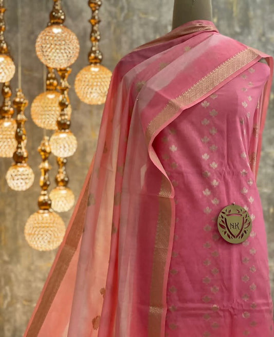 Pink Cotton Silk Banarasi Suit with Silver Zari Booti & Elegant Tassel Dupatta 1050SKL_CSP2