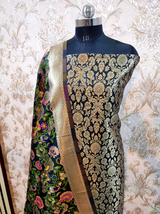 Black Katan Silk Floral Zari Booti Banarasi Suit with Aada Zari Jaal Dupatta 800SKL_KSD9