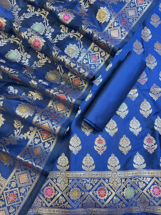 Navy Blue Semi Silk Alfi Mina Zari Booti Minakari Banarasi Suit 1000AJ_SSLK10
