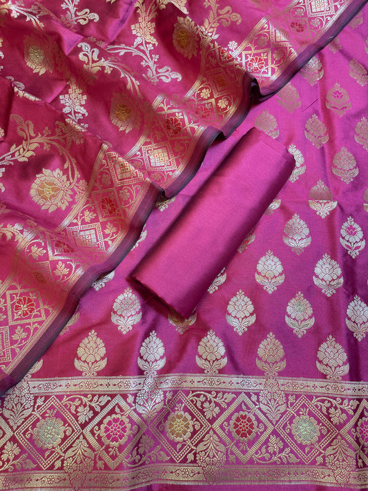Magenta Semi Silk Alfi Mina Zari Booti Minakari Banarasi Suit 1000AJ_SSLK2