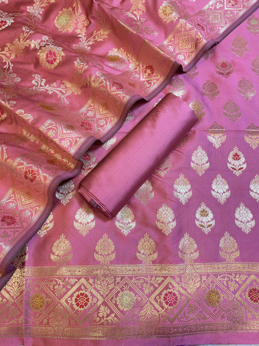 Pink Premium Handloom Mashru Silk Floral Zari Booti with Zari Jaal Dupatta Handloom Banarasi 3 pcs Suit Set 3000AJ_MSR16