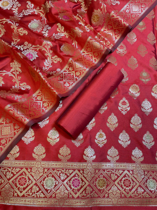 Red Semi Silk Alfi Mina Zari Booti Minakari Banarasi Suit 1000AJ_SSLK5