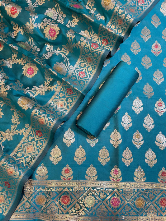 Seagreen Premium Handloom Mashru Silk Floral Zari Booti with Zari Jaal Dupatta Handloom Banarasi 3 pcs Suit Set 3000AJ_MSR19