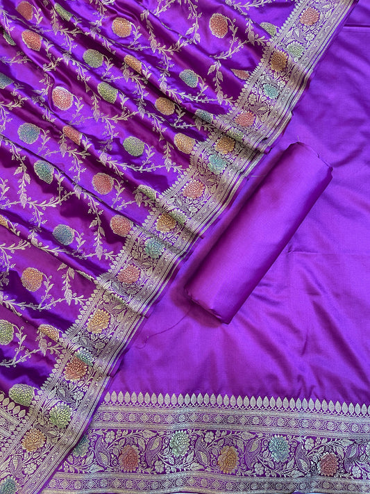 Purple Premium Handloom Mashru Silk Floral Zari Booti with Zari Jaal Dupatta Handloom Banarasi 3 pcs Suit Set 3000AJ_MSR18