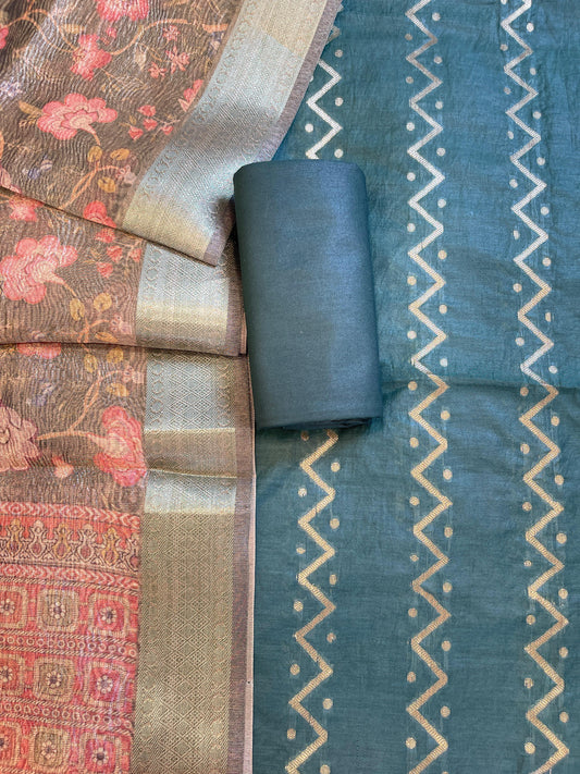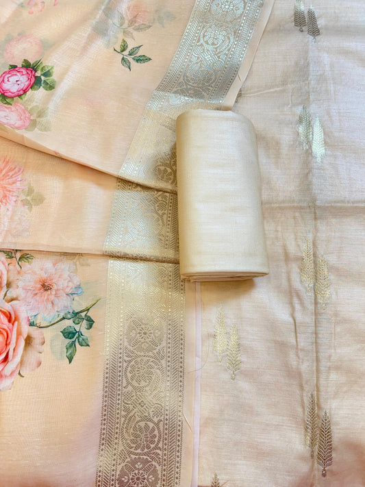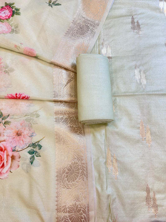 Tussar Pure Mercerise Silk Floral Zari Dual Booti with Digital Print Dupatta Suit Set 1SKL_MP7