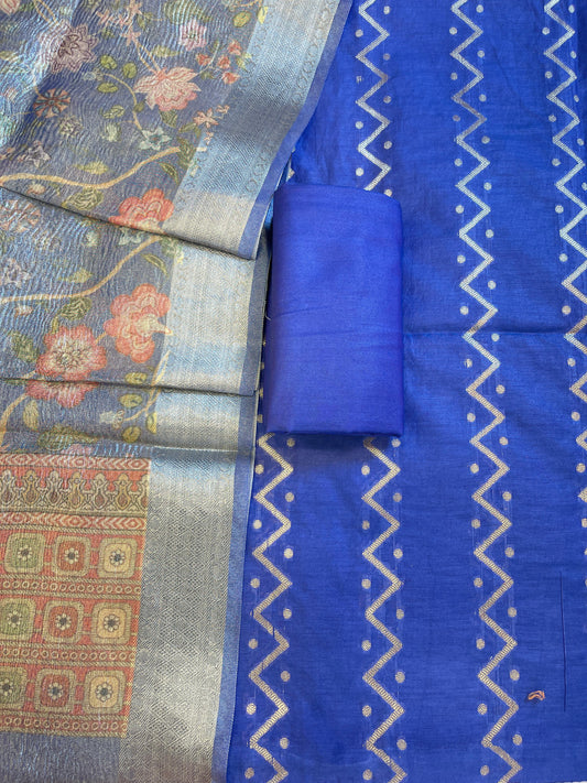Violet Blue Pure Mercerise Cotton Zig-Zag Zari with Crush Tissue Print Dupatta Suit Set 11SKL_MC2