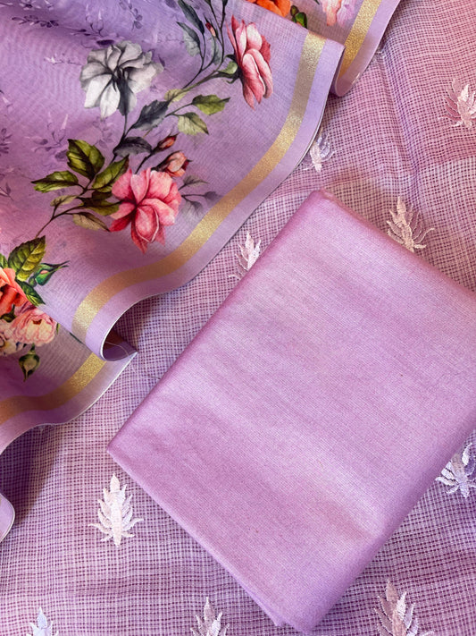 Purple Kota Check Resham Embroidery with Digital Print Dupatta Banarasi Suit Set 1SKL_KC12