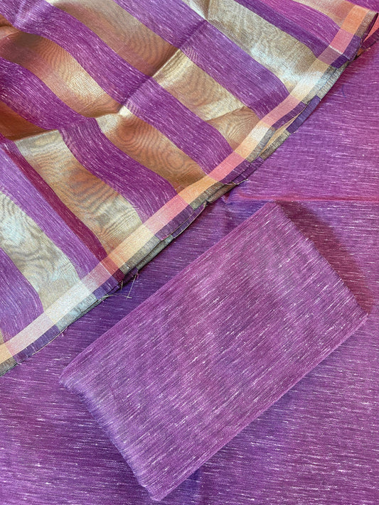 Purple Linen Zari Stripe Banarasi 3 pcs Suit Set 6SKL_LN23