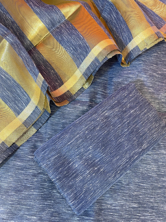 Navy Blue Linen Zari Stripe Banarasi 3 pcs Suit Set 6SKL_LN24