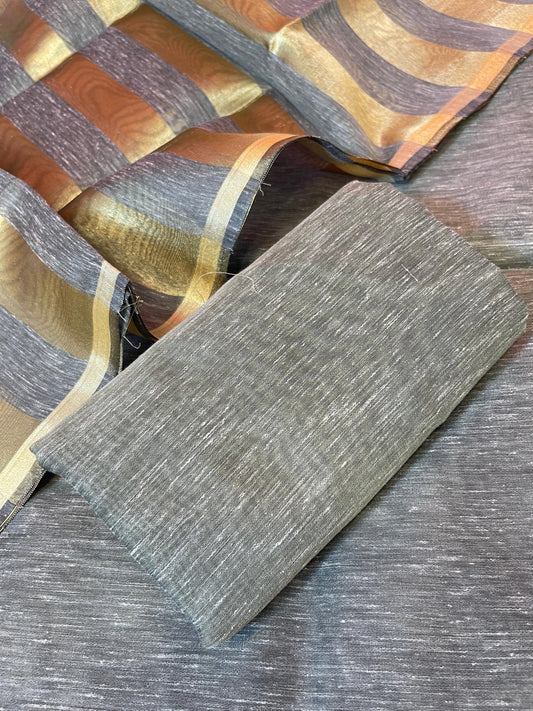 Grey Linen Zari Stripe Banarasi 3 pcs Suit Set 6SKL_LN25