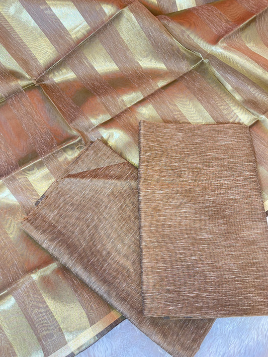 Brown Linen Zari Stripe Banarasi 3 pcs Suit Set 6SKL_LN26