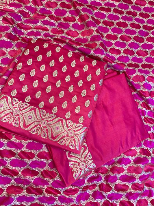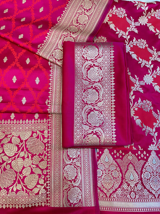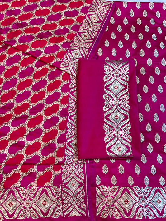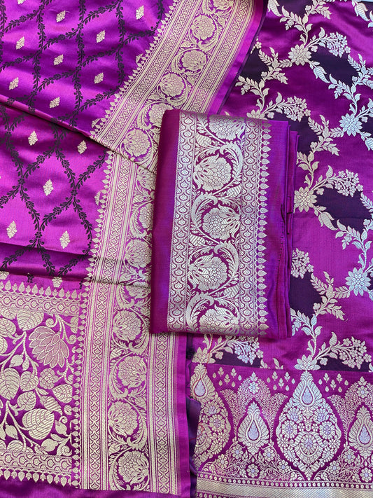Pure Handloom Magenta Mashru Silk Floral Rangkaat Floral Zari Jaal Banarasi 3 pcs Suit Set 26AJ_MSR1