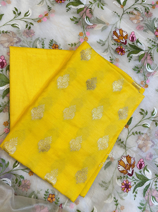 Yellow Cotton Silk Dyable Floral Zari Booti with Embroidered Dupatta Banarasi 3 pcs Suit Set 14IM_DCS21
