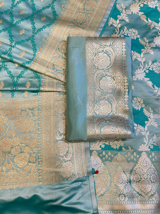 Pure Handloom Seagreen Mashru Silk Floral Rangkaat Floral Zari Jaal Banarasi 3 pcs Suit Set 26AJ_MSR2