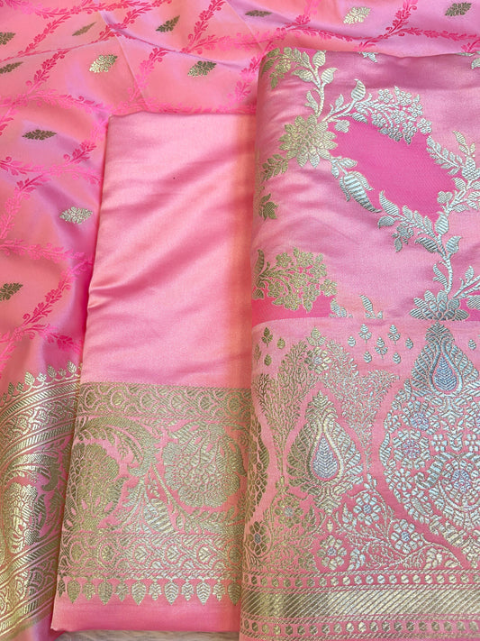 Pure Handloom Baby Pink Mashru Silk Floral Rangkaat Floral Zari Jaal Banarasi 3 pcs Suit Set 26AJ_MSR5