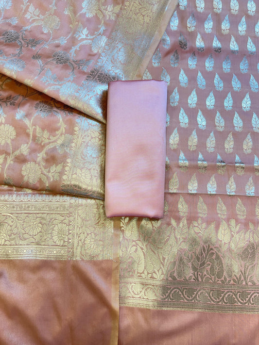 Baby Pink Semi Silk Floral Zari Booti Banarasi 3 pcs Suit Set 900AJ_SK14