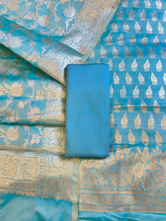 Sky Blue Semi Silk Floral Zari Booti Banarasi 3 pcs Suit Set 900AJ_SK15