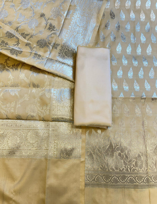 Beige Semi Silk Floral Zari Booti Banarasi 3 pcs Suit Set 900AJ_SK16
