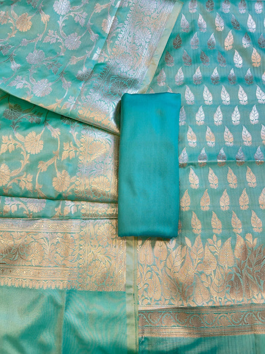 Seagreen Semi Silk Floral Zari Booti Banarasi 3 pcs Suit Set 900AJ_SK17