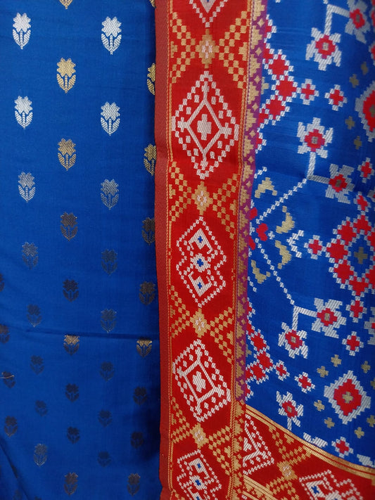 Blue Katan Silk Sona Rupa Floral Booti Banarasi Suit with Patola Dupatta 700SKL_KSP4