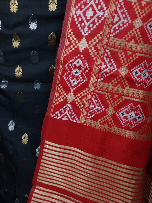 Black Cotton Silk Banarasi Suit with Plain Gold Zari Border & Patta Dupatta 600SKL_CS41
