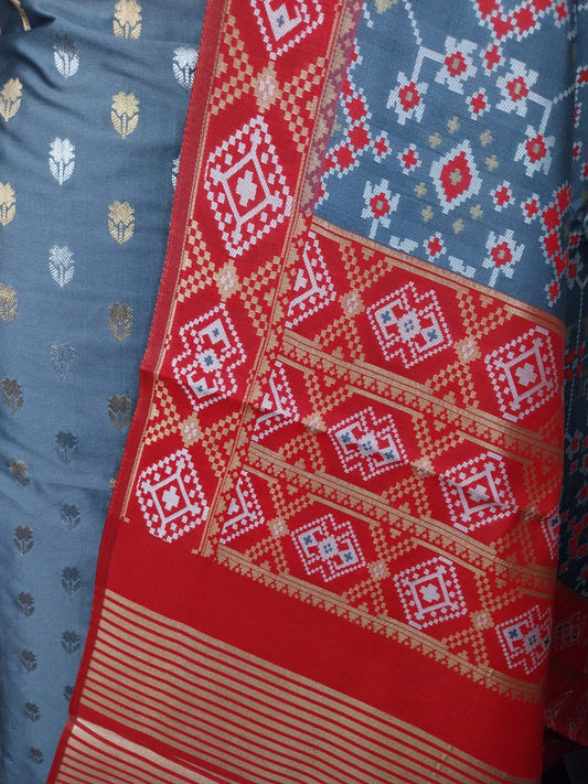 Grey Katan Silk Sona Rupa Floral Booti Banarasi Suit with Patola Dupatta 700SKL_KSP6