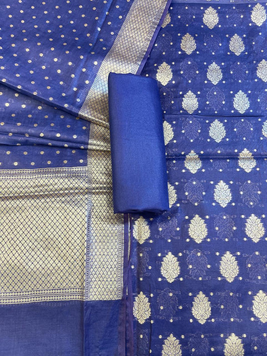 Violet Blue Pure Cotton Self Design Banarasi 3 pcs Suit Set 1200IM_PCSD12