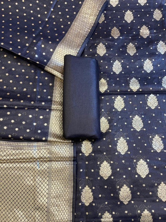 Tussar Pure Mercerised Zari Booti with Embroidery Tissue Dupatta Banarasi Suit Set 1200SKL_PME15