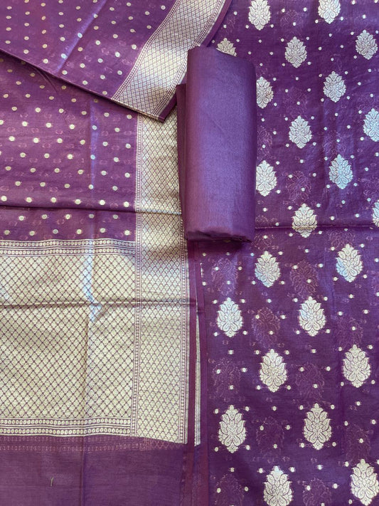 Purple Pure Mercerised Resham Booti with Digital Print Dupatta Banarasi Suit Set 1000SKL_PMC1