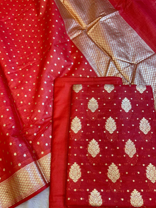 Red Pure Cotton Self Design Banarasi 3 pcs Suit Set 1200IM_PCSD8