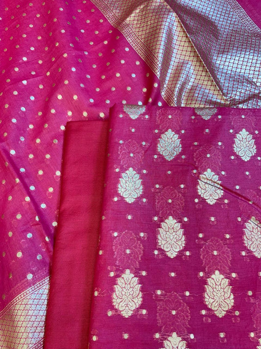 Pink Pure Mercerised Zari Booti with Embroidery Dupatta Banarasi Suit Set 1100SKL_PME8