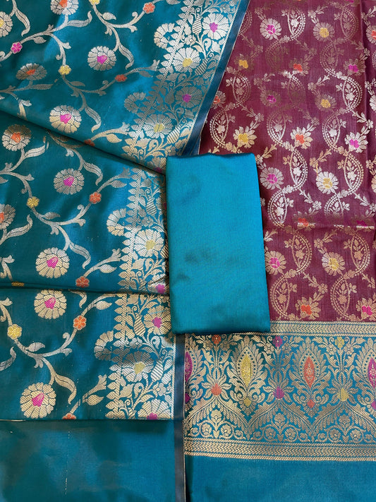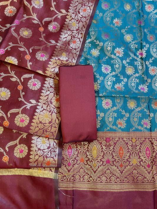 Maroon Art Silk Floral Zari Mina Jaal Contrast Banarasi Suit with Seagreen Dupatta 625AJ_TPT15