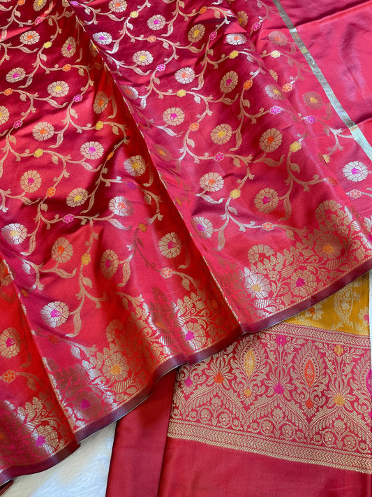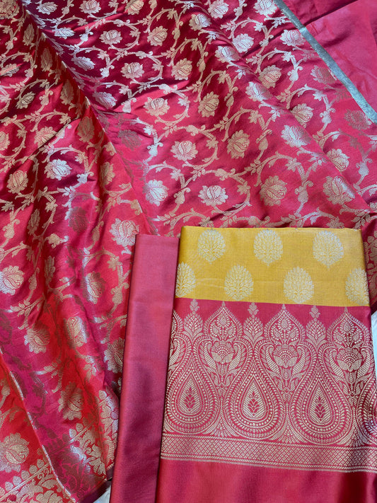 Red Art Silk Floral Zari Mina Jaal Contrast Banarasi Suit with Mustard Dupatta 625AJ_TPT13