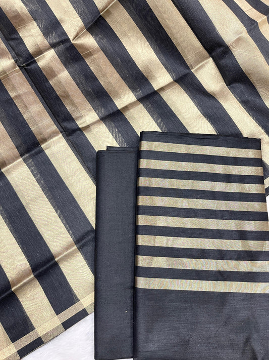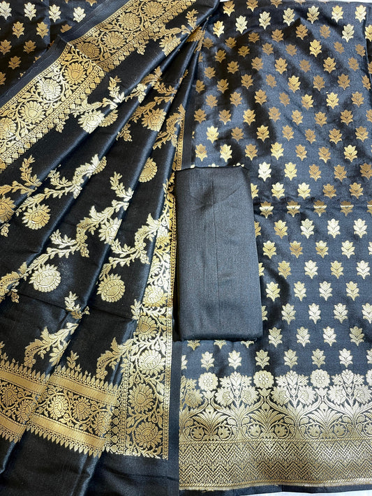 Black Semi Katan Silk Banarasi 3 pcs Suit Set 750SHL_SK8