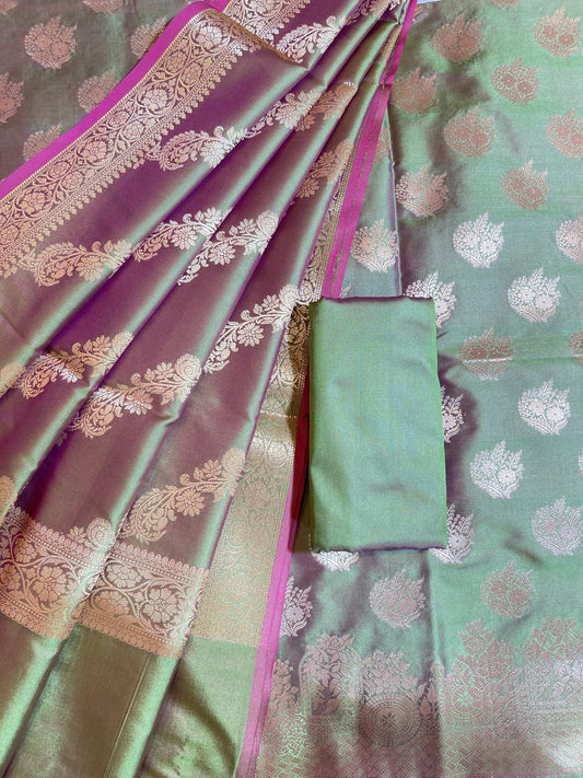 Pink Semi Katan Silk Banarasi 3 pcs Suit Set 750SHL_SK5