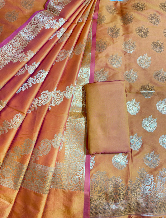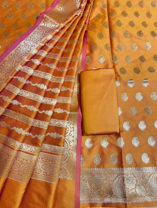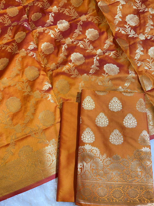 Orange Semi Katan Silk Banarasi 3 pcs Suit Set 750SHL_SK25