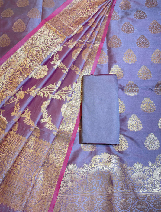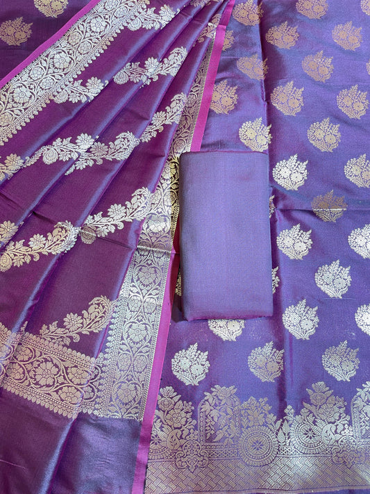 Purple Semi Katan Silk Banarasi 3 pcs Suit Set 750SHL_SK3