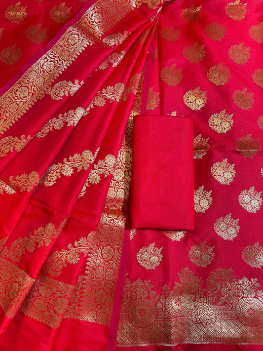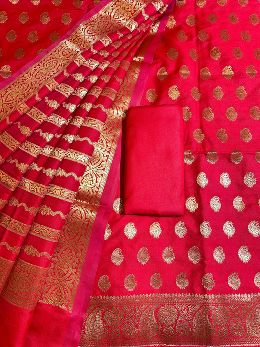 Red Semi Katan Silk Banarasi 3 pcs Suit Set 750SHL_SK9