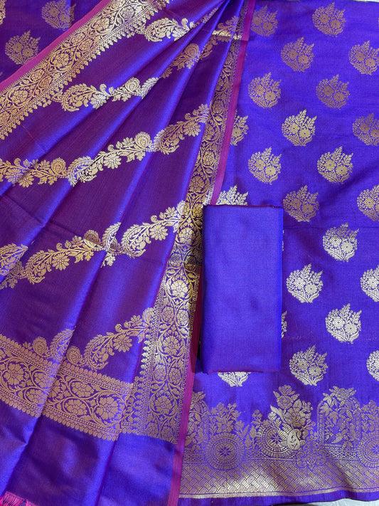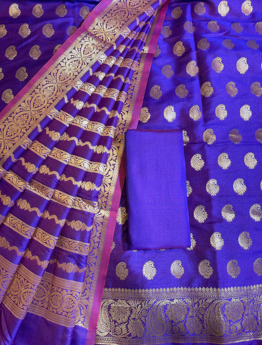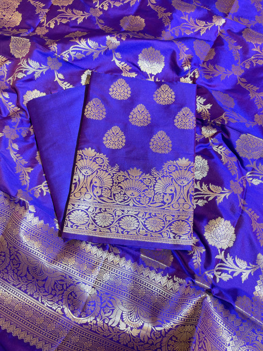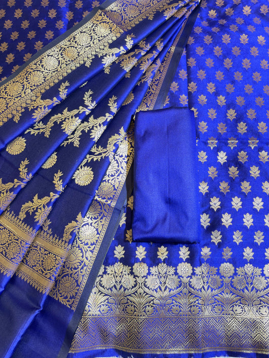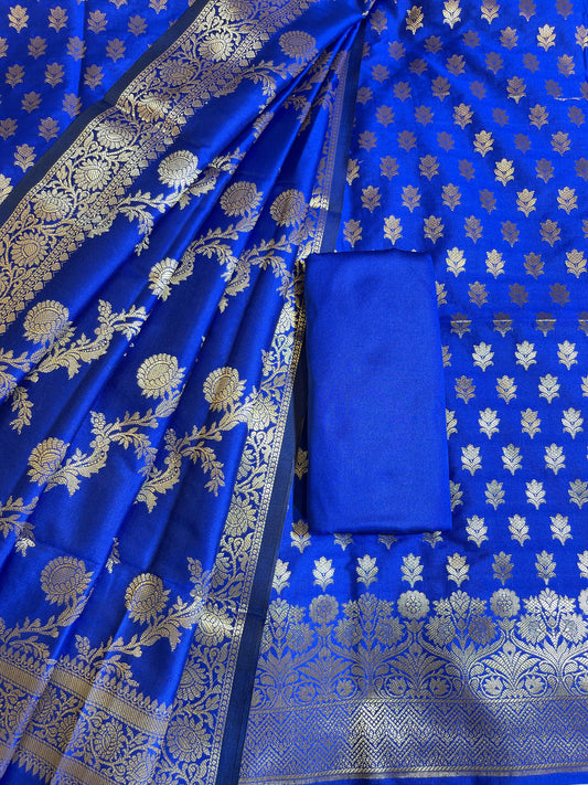 Royal Blue Semi Katan Silk Banarasi 3 pcs Suit Set 750SHL_SK21