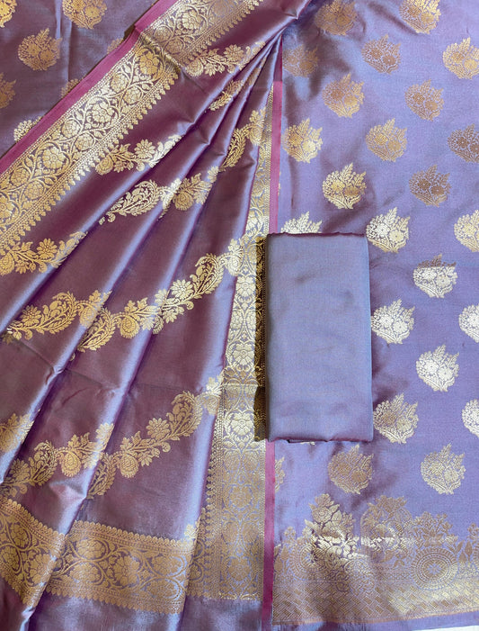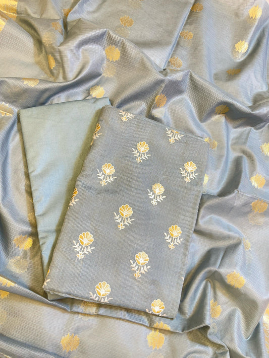 Grey Semi Katan Silk Banarasi 3 pcs Suit Set 750SHL_SK22