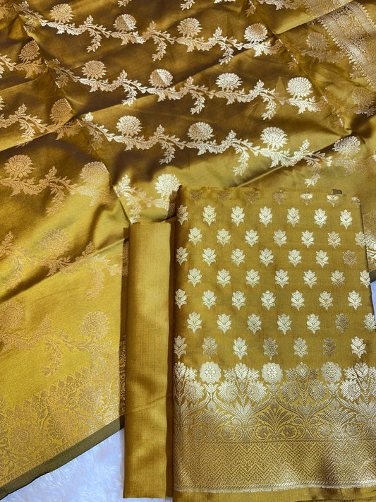 Mustard Yellow Semi Katan Silk Banarasi 3 pcs Suit Set 750SHL_SK11