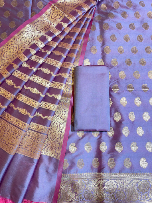 Grey Semi Katan Silk Banarasi 3 pcs Suit Set 750SHL_SK7