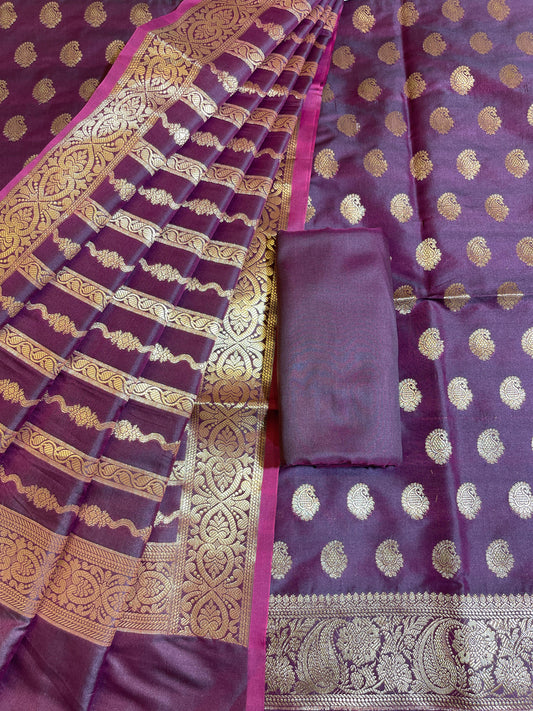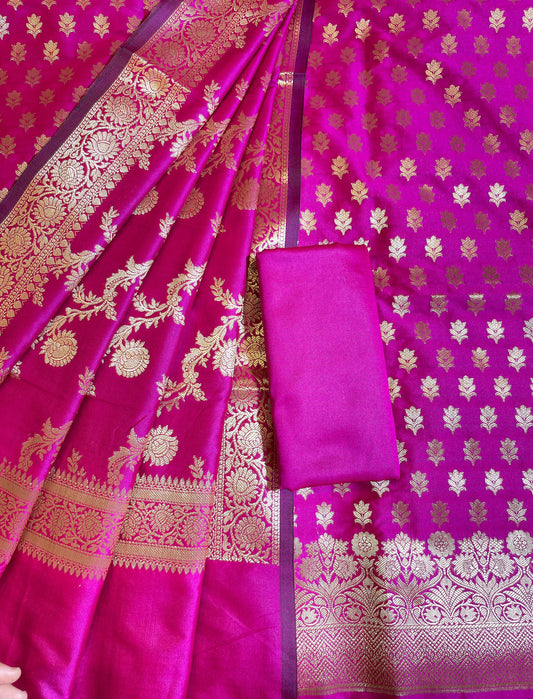 Magenta Semi Katan Silk Banarasi 3 pcs Suit Set 750SHL_SK12