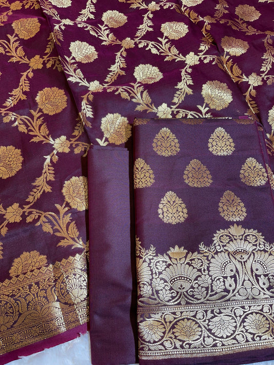 Wine Semi Katan Silk Banarasi 3 pcs Suit Set 750SHL_SK24